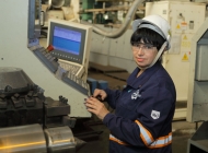 Вообще, мы в этом цехе не первый раз и всегда про себя отмечали здешнюю чистоту, простор и хорошую освещенность, что, согласитесь, можно наблюдать далеко не во всех подразделениях предприятия. Как нам рассказали, порядок и чистота в высокоточном машиностроительном производстве обязательны, ведь здесь установлены и работают станки с числовым программным управлением, многие из которых уникальны. Об этом и о многом другом нам рассказала сменный мастер участка станков с ЧПУ Наталья Луценко, которая работает в цехе с 1980 года. По её словам, она начинала токарем-универсалом, но со временем освоила все станки, став действительно мастером широкого профиля. В цехе её называют не иначе как корифеем участка станков с ЧПУ.